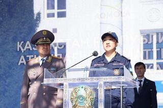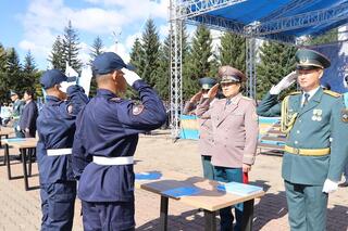 С поздравлением к будущим спасателям обратились заместитель акима Акмолинской области, председатель совета ветеранов Академии, родитель курсанта и курсант Жулдызай Шаймуратова.