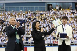 По итогам подсчета главный редактор КИнЭС Тазабеков официально подтвердил установление нового национального рекорда в категории «Массовые достижения» и торжественно вручил управлению образования акимата города Алматы официальный сертификат.