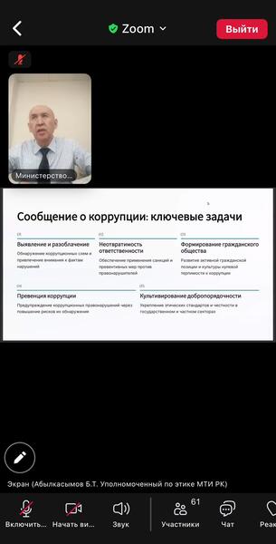 11 ноября 2025 года уполномоченным по этике Министерства совместно с юридическим департаментом проведен семинар-обучение на тему: «Этика руководителя, правила поведения и антикоррупционная профилактика»