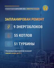 Сегодня в Службе центральных коммуникаций на пресс-конференции Вице-министр энергетики Сунгат Есимханов рассказал о мерах по модернизации энергетического сектора.В прошлом году на электростанциях выполнен ремонт 10 энергоблоков, 63 котлов и 39 турбин. По электрическим сетям завершен ремонт 17 тыс. км и 420 подстанций. На тепловых сетях заменено 323 км.Принятые меры позволили достигнуть исторический максимум генерации 17 273 МВт, что на 7% выше уровня прошлого отопительного периода. Износ ТЭЦ снижен с 64% до 61%.В ремонтную кампанию текущего года запланировано на электростанциях выполнить ремонт 9 энергоблоков, 55 котлов и 51 турбины. По электрическим сетям запланирован ремонт 17,1 тыс. км и 444 подстанций. На тепловых сетях к замене запланировано 377 км. Указанные мероприятия позволят снизить износ с 61% до 59%.Особое внимание уделяется вопросам обеспеченности топливом. На топливных складах энергоисточников накоплено 4,7 млн тонн угля, что на 7% больше уровня прошлого года. На всех энергоисточниках имеется нормативный запас топлива. В целом, на текущий отопительный сезон потребность в угле для коммунально-бытовых нужд и населения составляет 7,46 млн тонн. На сегодня заготовлено 7,68 млн тонн или 103% от годового плана. Министерство энергетики продолжит работу по обеспечению стабильного прохождения текущего осенне-зимнего периода.
