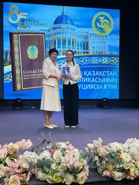 Ученые университета и сотрудники правоохранительных органов прочитали доклады об истории Основного Закона страны и его основных аспектах. Далее председатель Атырауской областной территориальной избирательной комиссии А.Кистаубаева, коротко остановившись на изменениях, внесенных в Конституцию страны по развитию избирательной системы, поздравила молодых избирателей – студентов университета, достигших возраста совершеннолетия в канун 30-летия Основного Закона. Отметив, что в 18 лет наступает избирательное право, она призвала молодых избирателей активно реализовывать свое право участия в выборах и вручила им книги Конституции Республики Казахстан.