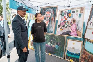 Праздник получился ярким и насыщенным. Для детей в центральном парке имени Б. Сокпакбаева были организованы мастер-классы, шоу-программы, арт-зона и TikTok-локация, где аким лично вышел в прямой эфир, передав привет пользователям соцсетей. Юные художники в арт-пространстве создали портрет Динмухамеда Конаева.