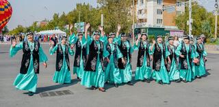 Праздничная программа продолжилась театрализованным представлением из истории Конаева, концертными номерами и шоу. В небо поднялся воздушный шар, придавший празднику особое настроение.