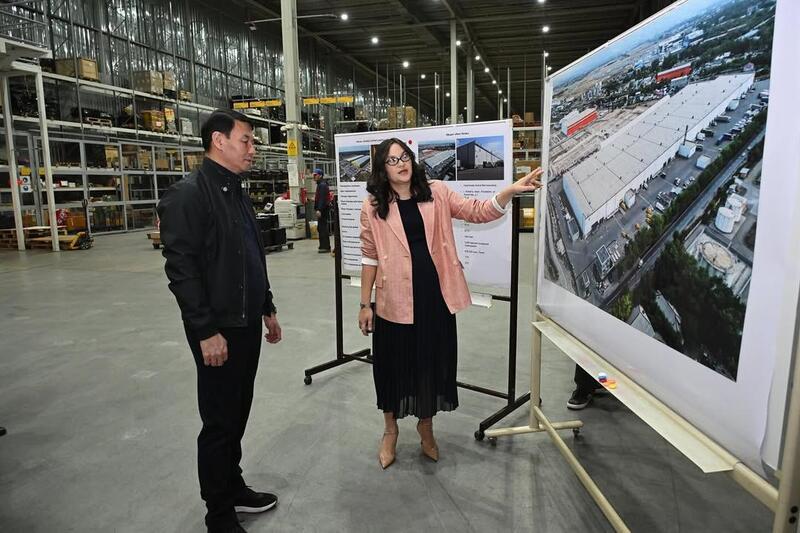 Далее Дархан Сатыбалды посетил предприятие ТОО «ILP Group», занимающееся предоставлением логистических и складских услуг. Компания управляет сетью современных логистических парков общей площадью свыше 100 тыс. кв. м.