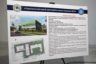 Далее глава города ознакомился с ходом работ по возведению пристройки к школе-гимназии №73 в Бостандыкском районе. Строительство ведется за счет частных средств в рамках социальной ответственности бизнеса.