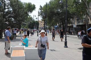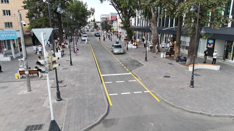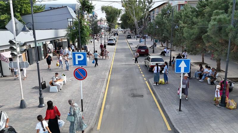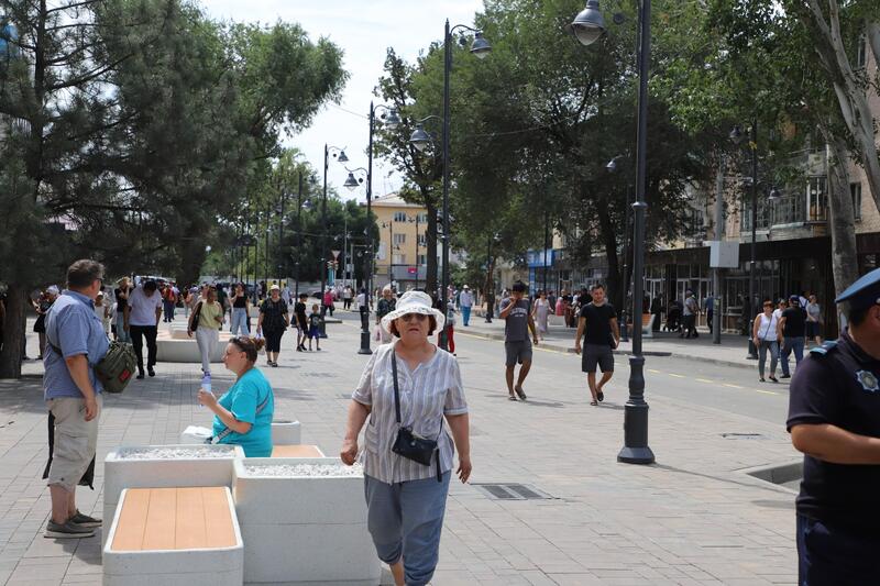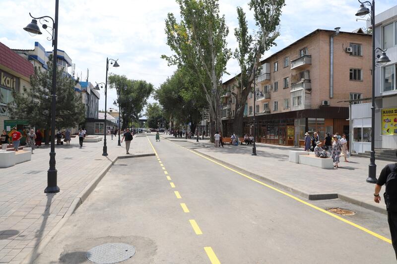 Аким города Ернат Бәзіл проверил качество благоустройства новой пешеходной зоны «Арбат»