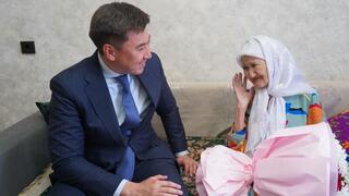 Аким Кокшетау поздравил Мариам Сыздыккызы с 100-летним юбилеем
