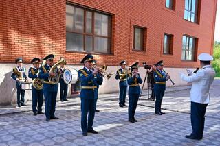 Особо следует отметить, что во дворе дома ветеранов войны военный оркестр воинской части 5511 Национальной гвардии исполнил мелодии военных лет.
