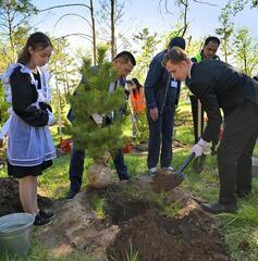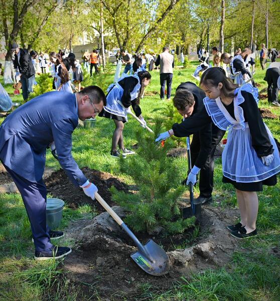 Первой точкой объезда стала Набережная, где в рамках месячника по благоустройству была высажена Аллея выпускников школ города Павлодара 2026 года. 140 выпускников - претендентов на знак «Алтын белгі» и отличников учебы высадили саженцы сосны.