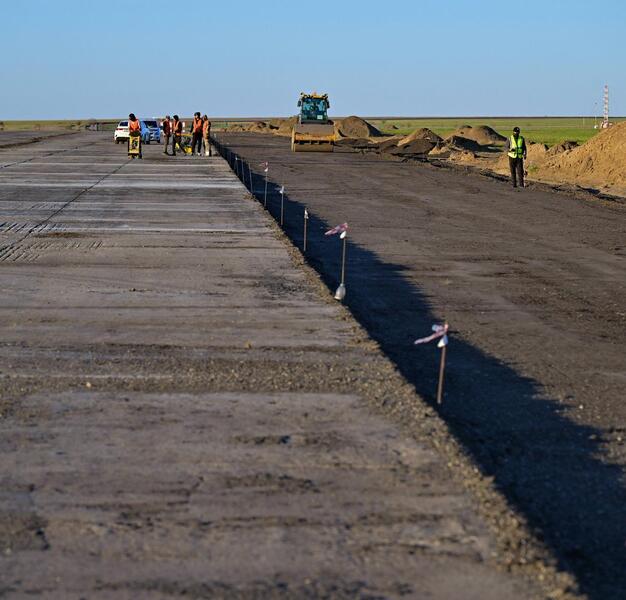 На сегодняшний день выполнены 51% работ. Завершены фрезерование покрытия, расширение основания ВПП, установка периметрального ограждения протяженностью 17,2 км, монтаж освещения и видеонаблюдения, обустроены дренаж, заземление, закуплено все необходимое оборудование.