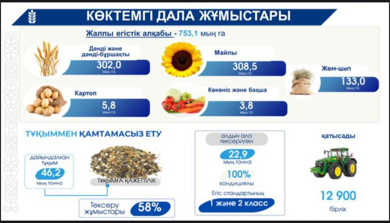 Аким области поручил завершить весенние полевые работы до 25 мая, а план по обновлению сельхозтехники - до 1 ноября.
