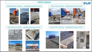 По информации руководителя областного управления здравоохранения Талгата Молдабекова, в рамках национального проекта «Модернизация сельского здравоохранения» в 2023-2025 годах в регионе планируется построить 65 объектов первичной медико-санитарной помощи. В прошлом году завершено строительство 62 из них, оформлены акты ввода в эксплуатацию. Однако большинство медицинских учреждений не полностью готово обслуживать население: работы по благоустройству не завершены, медицинское оборудование не установлено, доставлена не вся мебель. Между тем, у некоторых зданий дала протечку крыша, от чего стали трескаться стены. В настоящее время из 62 объектов только 10 переданы в ведение районных больниц.