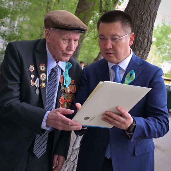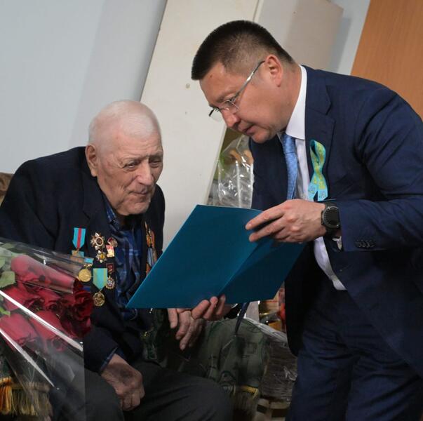 По поручению Главы государства Касым-Жомарта Токаева аким области вручил ветеранам юбилейную медаль «Ұлы Отан соғысындағы Жеңіске 80 жыл» и зачитал поздравления от имени Президента.