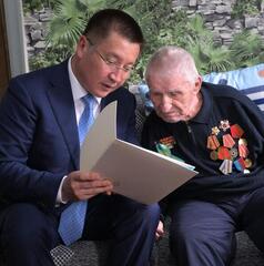 Аким Павлодарской области Асаин Байханов поздравил ветеранов Великой Отечественной войны с 80-летием Великой Победы