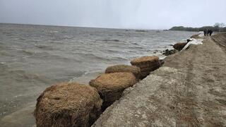 Аким области Гауез Нурмухамбетов побывал в селе Прибрежное, которое фактически находится на острове. Он проверил укрепительные работы на дамбе. Несмотря на сильный порывистый ветер и высокие волны, дамба выдерживает напор воды.