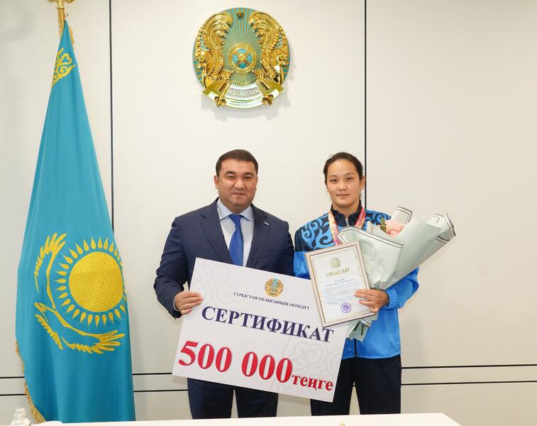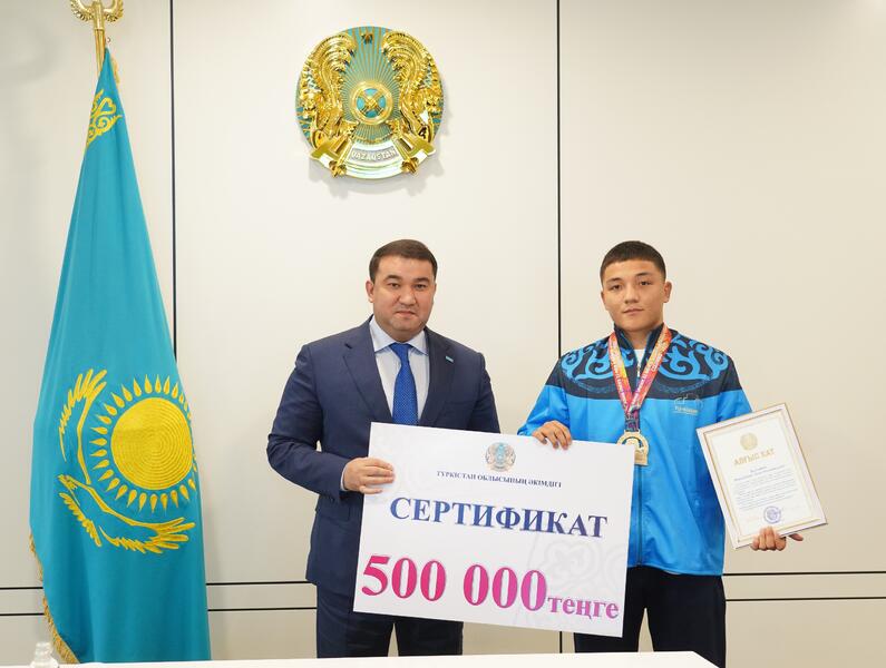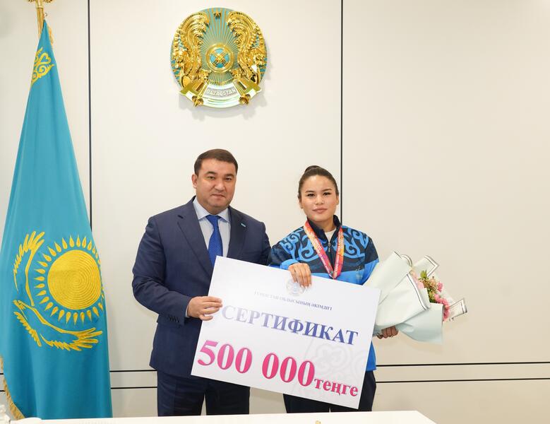 АКИМ ТУРКЕСТАНСКОЙ ОБЛАСТИ ЧЕСТВОВАЛ ЧЕМПИОНОВ АЗИИ