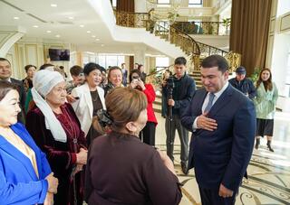 АКИМ ТУРКЕСТАНСКОЙ ОБЛАСТИ ВСТРЕТИЛСЯ С МНОГОДЕТНЫМИ И УВАЖАЕМЫМИ МАТЕРЯМИ И ПОЗДРАВИЛ ИХ С ПРАЗДНИКОМ