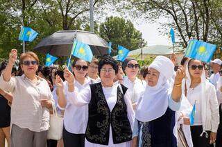 В Алматинской области ко Дню государственных символов Республики Казахстан состоялась патриотическая акция «Тұғырлы Туым». В рамках мероприятия Государственные флаги были одновременно подняты во всех городах и районах региона.