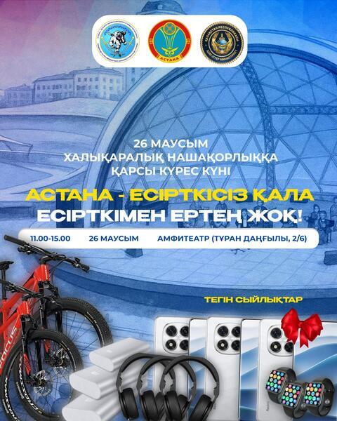 В столичном амфитеатре на набережной реки Есиль 26 июня состоится масштабное антинаркотическое мероприятие «С наркотиками – нет будущему!», сообщает официальный сайт акимата Астаны.