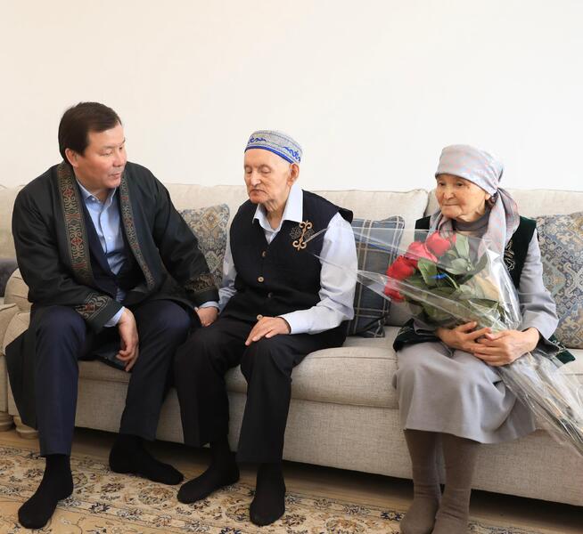 Во время встречи глава региона поздравил аксакала с праздником, поинтересовался его состоянием здоровья и поприветствовал в соответствии с национальной традицией. Также он отметил его огромный вклад в развитие культуры Актюбинской области.