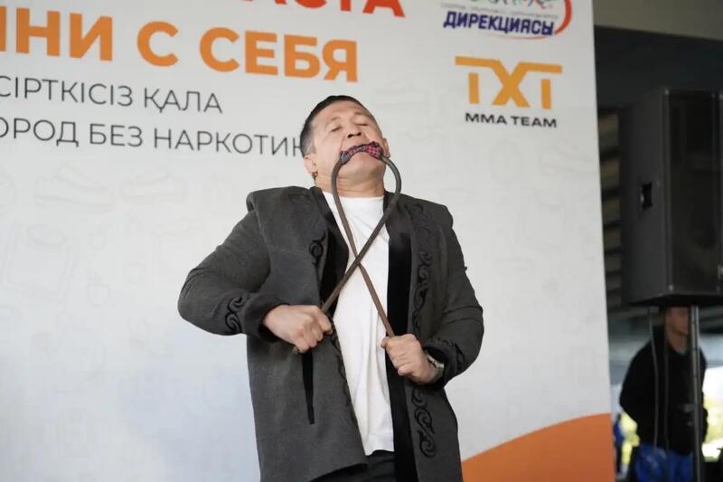 Также на церемонии открытия чемпион «конкурса силачей» Куаныш Шарипбекулы продемонстрировал свое мастерство (гнул железо и гвозди) и подарил собравшимся зрителям интересные впечатления.