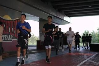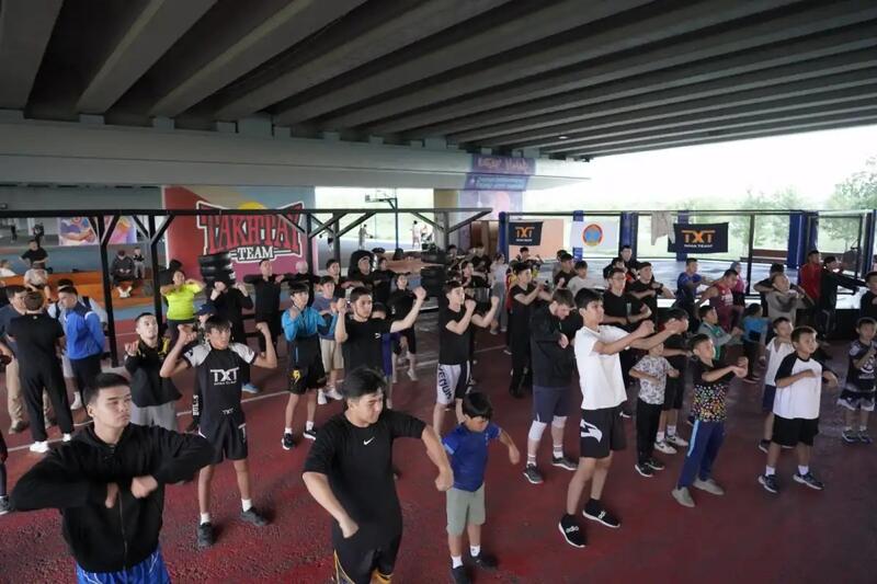 В церемонии открытия тренировок приняли участие заместитель руководителя дирекции по проведению спортивно-массовых мероприятий акимата города Астаны Ержигит Осербай, известный боец ММА Василий Тахтай.