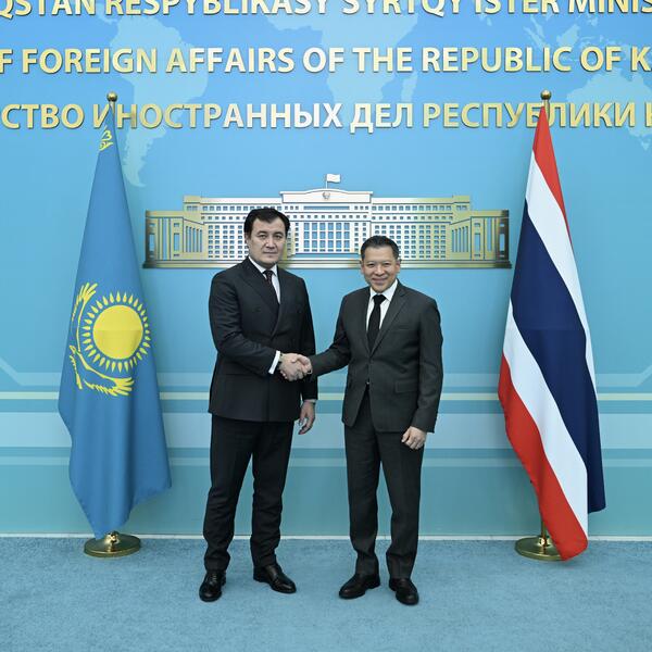 В Министерстве иностранных дел Республики Казахстан состоялся первый раунд казахско-таиландских политических консультаций с участием Заместителя министра иностранных дел РК Алибекa Бакаева и Секретаря Министра иностранных дел Королевства Таиланд Саруна Чароенсувана.