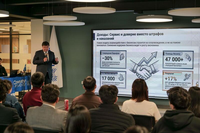 Министр финансов Мади Такиев встретился со студентами, магистрантами и представителями бизнеса в Coventry University Kazakhstan.