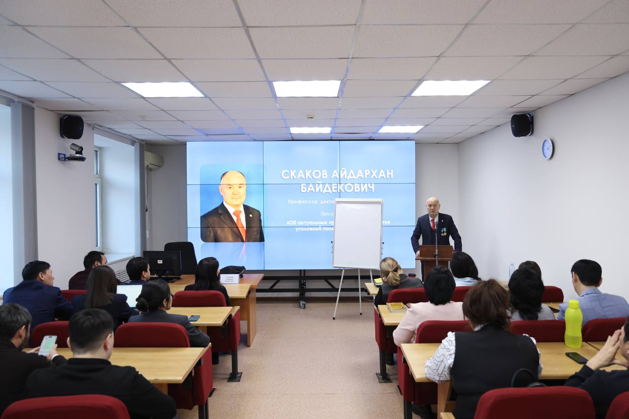Член Высшего Судебного Совета, профессор кафедры уголовного права и организации исполнения наказания Костанайской академии МВД им. Ш.Кабылбаева Айдаркан Скаков провёл гостевую лекцию для магистрантов Академии правосудия