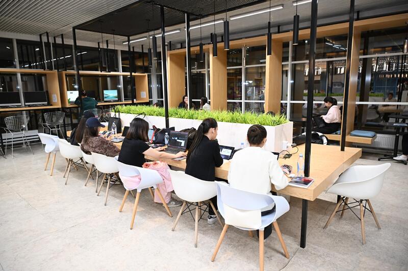 Отдельное внимание Дархан Сатыбалды уделил библиотеке «Alatau Creative Hub», которая служит центром притяжения жителей и объединяет функции культурной площадки и коворкинг-центра Алатауского района.