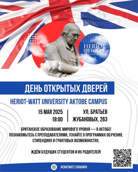 15 мая в 18:00 в кампусе Heriot-Watt University в Актобе состоится День открытых дверей. Мероприятие проводится в рамках образовательного сотрудничества с Zhubanov University по программе двойного диплома.
