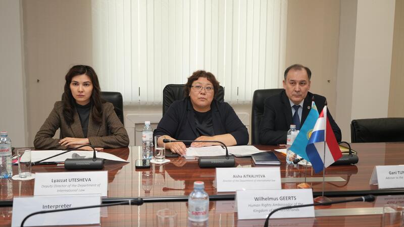Директор департамента международного права Аиша Айткалиева встретилась с Послом по правам человека Королевства Нидерландов Уимом Геертсом