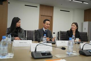 Директор Департамента международного права Министерства юстиции Республики Казахстан Айша Айтқалиева встретилась с региональным директором Офиса по развитию торговли Гонконга Крисом Ломом