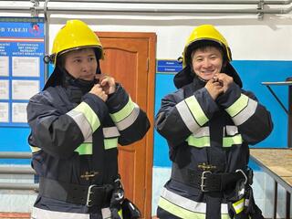 Ернур начал свою службу ещё раньше и сегодня он старший инженер ОЧС города Аксу. Его стаж — более 11 лет. Он вспоминает, что на первом пожаре главным уроком для него стала командная работа: именно она помогает преодолеть страх и действовать решительно.