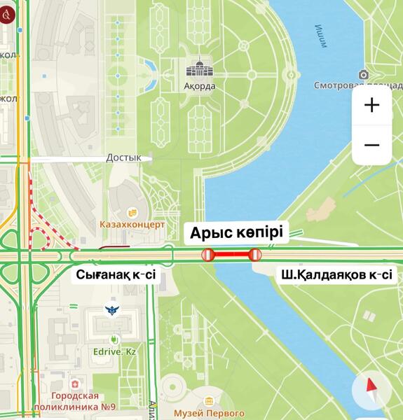 Движение на мосту Арыс частично ограничат в Астане