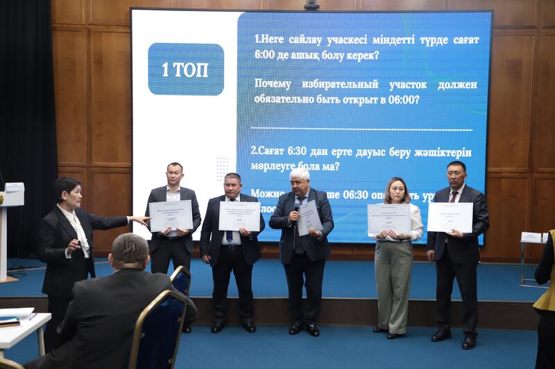 Как на начальном, так и на заключительном этапе было проведено тестирование, позволившее оценить не только знание норм избирательного законодательства, но и умение участников применять их в практических ситуациях. Результаты подтвердили высокий уровень профессиональной подготовки и эффективность практико-ориентированного подхода. В первый и второй день наивысшие результаты показали 3 участника: председатель территориальной избирательной комиссии г.Лисаковска Костанайской области В.Валентюк, председатель территориальной избирательной комиссии г.Экибастуза Павлодарской области А.Оспанова и председатель территориальной избирательной комиссии Бурабайского района Акмолинской области К.Абдилова.