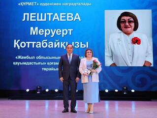 Согласно Указу Президента Республики Казахстан орденом «Құрмет» награждены председатель общественного объединения «Ассоциация деловых женщин Жамбылской области» Меруерт Лештаева и директор предприятия «Дана-Дель» Бакытгуль Токтыбаева.