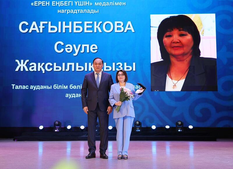 Медалью «Ерен еңбегі үшін» награждены врач Жамбылской областной многопрофильной детской больницы Бибигуль Жумакулова, ветеран труда Раушан Жетибаева, а также методист отдела образования Таласского района Сауле Сагынбекова.
