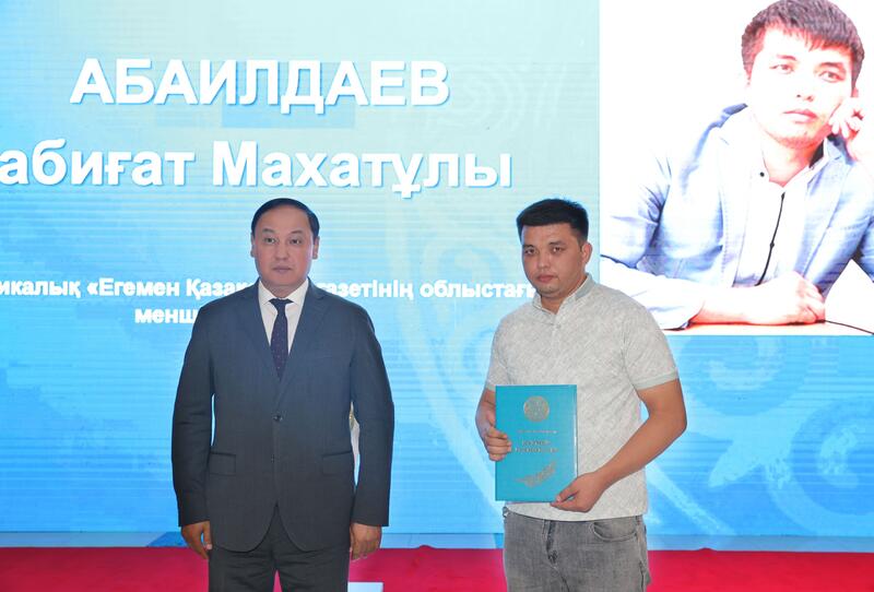 Праздничные награды также вручили председатель областного маслихата Абдалы Нуралиев и председатель областного филиала Союза журналистов Казахстана Жанабай Миллионов.
