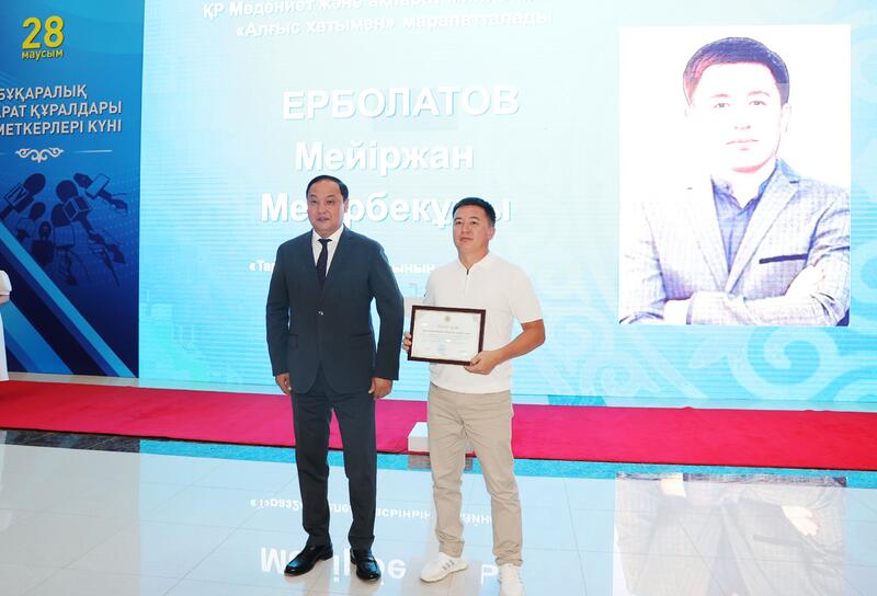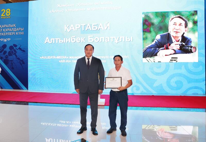 Нагрудного знака «Ақпарат саласының үздігі» удостоены ветеран журналистики Абдилда Сарсенбиев и главный редактор общественно-политической газеты «Шу өңірі» Ергали Картайган.