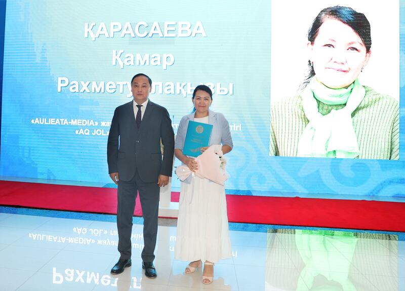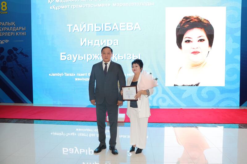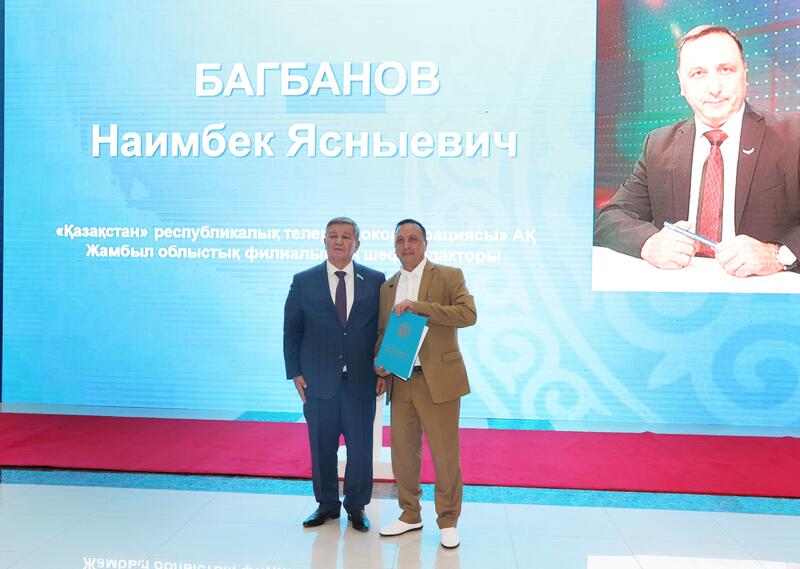 Праздничное мероприятие продолжилось торжественной церемонией награждения.В соответствии с Указом Президента Республики Казахстан ветеран журналистики Турсынхан Толкынбайулы награждён орденом «Құрмет», а директор телеканала «Jambyl» Гульбаршын Куланбаева — медалью «Ерен еңбегі үшін».