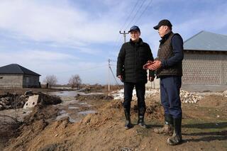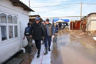 Аким Жамбылской области Ербол Карашукеев посетил жилой массив Бектобе в городе Таразе, где осмотрел дворы частных домов, которые были подтоплены.