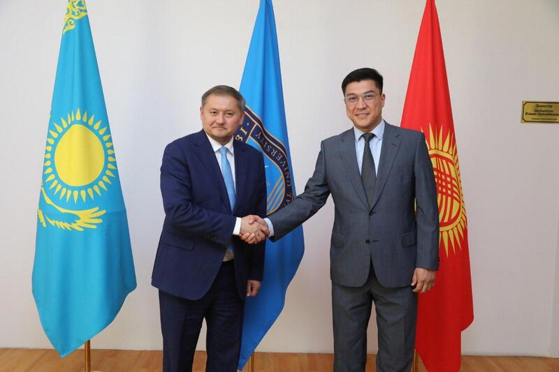 Министр науки и высшего образования Республики Казахстан Саясат Нурбек и министр науки, высшего образования и инноваций Кыргызской Республики Бактияр Орозов посетили филиал в Бишкеке Казахского национального университета имени аль-Фараби.