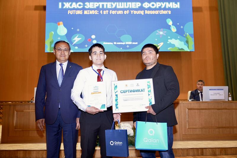Победители конкурсов, прошедших в рамках Форума юных исследователей, были награждены специальными памятными призами от Национальной академии наук при Президенте РК, компании Qalan, а также сертификатами на бесплатную подписку на курсы по математике и английскому языку, и научно-познавательного журнала «әл-Жәбірдің атасы».