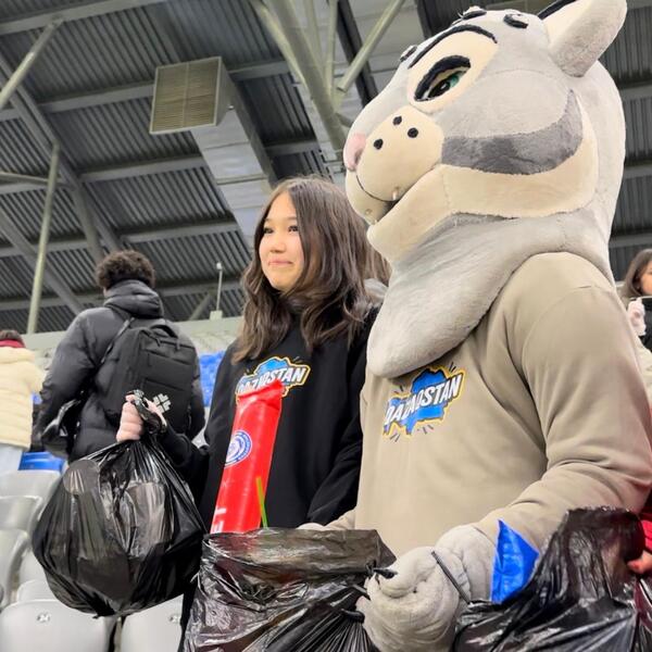 Инициативу поддержал и любимец астанчан — экоперсонаж Тазабек. Его присутствие вызвало искреннюю радость у фанатов и превратило уборку в дружеское и по-настоящему тёплое завершение вечера.