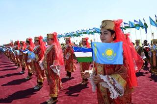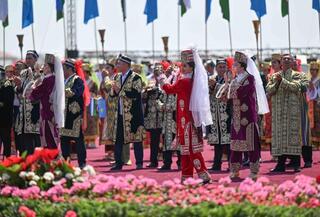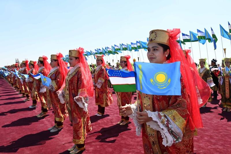 Состоялась торжественная церемония встречи. В честь Президента Казахстана были исполнены национальные песни и танцы.