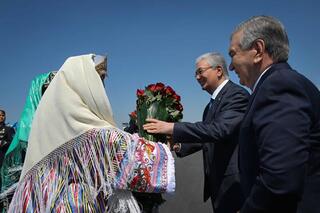 В аэропорту Бухары высокого гостя встретил Президент Узбекистана Шавкат Мирзиёев.