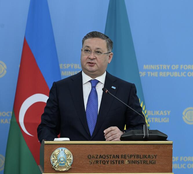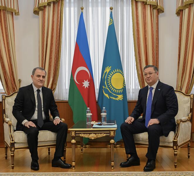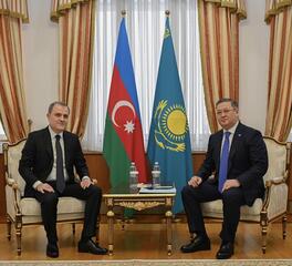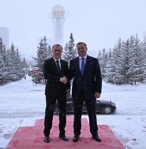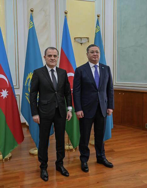Астана, 11 марта 2025 года – Заместитель Премьер-министра – Министр иностранных дел Республики Казахстан Мурат Нуртлеу провёл переговоры с Министром иностранных дел Азербайджанской Республики Джейхуном Байрамовым, находящимся в Астане с официальным визитом.