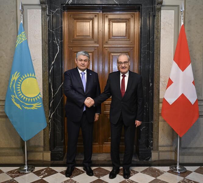 Берн, 2 декабря 2025 года – Министр иностранных дел Республики Казахстан Ермек Кошербаев провёл встречу с Вице-президентом, главой Федерального департамента по экономическим отношениям, образованию и исследованиям Швейцарии Ги Пармеланом.