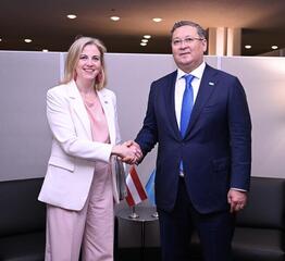 С Федеральным министром по европейским и международным делам Австрийской Республики Беатой Майнль-Райзингер обсуждены пути углубления казахстанско-австрийского сотрудничества в политической, экономической и культурно-гуманитарной сферах. Подчёркнута значимость активизации двустороннего диалога и укрепления взаимодействия в рамках Межправительственной комиссии и Делового совета.